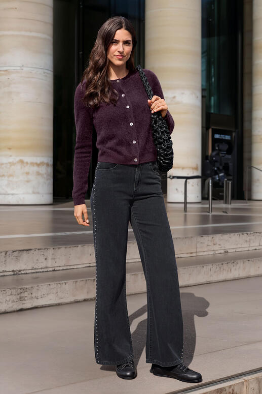 Élégance et fonctionnalité : laine finement foulée aux broderies artistiques. Coupe sobre.