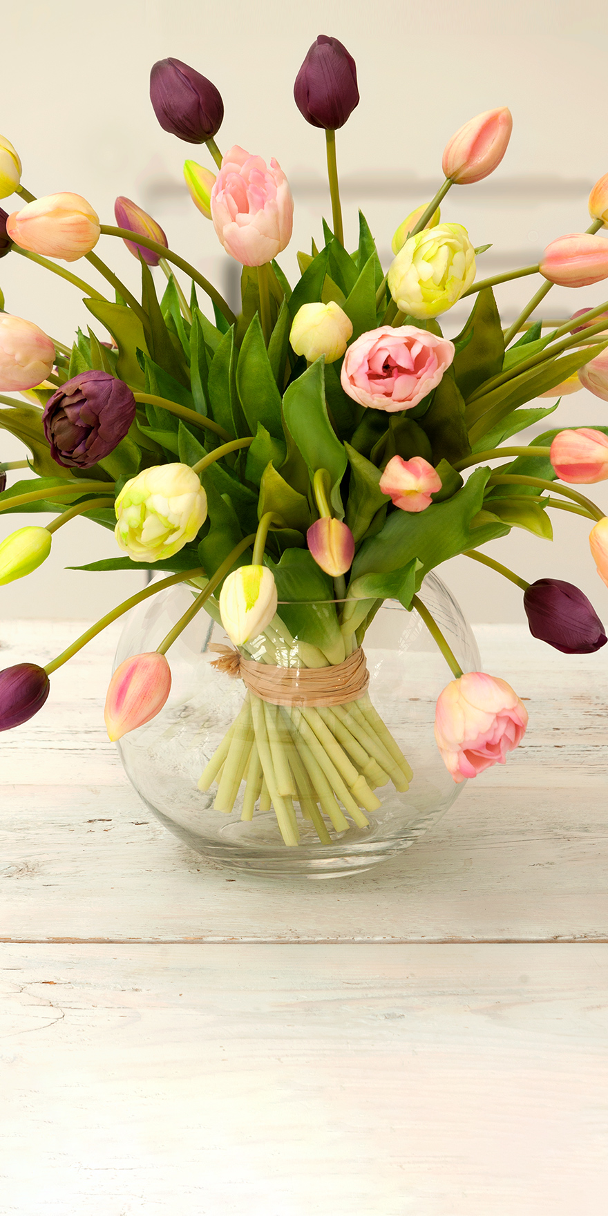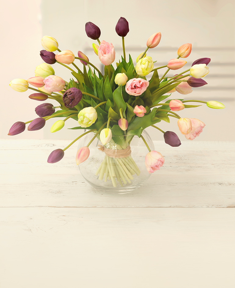 Un superbe bouquet de tulipes, parfaitement imitées, comme fraichement cueillies.